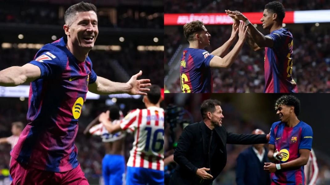 বিকেলে রিয়াল মাদ্রিদের হার দেখে রাতে খেলতে নেমেছিল বার্সেলোনা। যা ম্যাচ জিতলে পয়েন্ট ব্যবধান আরও বাড়ানোর সুযোগ করে দিয়েছিল বলে সহজ স্বীকারোক্তি দিলেন ডিফেন্ডার এরিক গার্সিয়া। হলো-ও তাই, পুরো দ্বিতীয়ার্ধে ১০ জন নিয়ে খেলা অ্যাতলেটিকো মাদ্রিদকে ২-১ ব্যবধানে হারিয়েছে হ্যান্সি ফ্লিকের দল। ফলে লা লিগার টেবিলের শীর্ষে থাকা বার্সা রিয়ালের সঙ্গে ৭ পয়েন্টের ব্যবধান বাড়াল। অ্যাতলেটিকোর মাঠে খেলতে নেমে সবদিক থেকেই আধিপত্য দেখিয়েছে কাতালানরা। যদিও প্রথম গোলটা তারা হজম করে। অবশ্য সমতায় ফিরতে সময় লাগেনি সফরকারীদের। বিরতিতে যাওয়ার আগেই বড় ধাক্কা খায় অ্যাতলেটিকো, নিকো গঞ্জালেসকে হারিয়ে পরিণত হয় ১০ জনের দলে। শেষ মুহূর্তে গোল করে বার্সা সেই সুযোগ ভালোভাবে কাজে লাগিয়েছে। তাদের পক্ষে মার্কাশ রাশফোর্ড ও রবার্ট লেভান্ডফস্কি এবং অ্যাতলেটিকোর পক্ষে জুলিয়ানো সিমিওনে গোল করেছেন। ম্যাচজুড়ে দাপট ছিল বার্সেলোনার, ৬৯ শতাংশ পজেশনের পাশাপাশি ২৩টি শট নেয় তারা। যার মধ্যে ৯টি লক্ষ্যে ছিল। বিপরীতে মাত্র ৬ শটের দুটি লক্ষ্যে রাখতে পারে দিয়েগো সিমিওনের দল। দুই দলের পরের দেখা হবে বার্সার মাঠ ক্যাম্প ন্যুতে। তার আগে এই জয়ে পয়েন্ট টেবিলের শীর্ষে থাকা ব্লুগ্রানাদের পয়েন্ট দাঁড়াল ৩০ ম্যাচে ৭৬। সমান ম্যাচে ৫৭ পয়েন্ট নিয়ে অ্যাতলেটিকো চার নম্বরে রয়েছে। টেবিলের ১৭ নম্বর দল মায়োর্কার কাছে হেরে বার্সার চেয়ে ৭ পয়েন্টে পিছিয়েছে দুইয়ে থাকা রিয়াল। আবারও ইনজুরির কারণে মাঠের বাইরে ছিটকে পড়া রাফিনিয়ার জায়গা পূরণে রাশফোর্ডকে এগিয়ে আসার আহবান ছিল বার্সা কোচ ফ্লিকের। সেটাই এই ম্যাচে পূর্ণ করলেন এই ইংলিশ ফরোয়ার্ড। এর আগে অবশ্য খেলার মাত্র দ্বিতীয় মিনিটেই বার্সা সুযেগা পায়, তবে জোয়াও কান্সেলোর কাটব্যাক পেয়ে লামিনে ইয়ামালের নেওয়া কোনাকুনি শট অ্যাতলেটিকো ডিফেন্ডারের গায়ে আটকে যায়। এরপর রাশফোর্ডের ফ্রি-কিক পরাস্ত করেন গোলরক্ষক হুয়ান মুসো। খানিক বাদে বার্সা গোলরক্ষক হুয়ান গার্সিয়াও আঁতোয়ান গ্রিজম্যানের শট ঠেকান। এভাবে আক্রমণ-পাল্টা আক্রমণেও অবশ্য কেউ গোল পাচ্ছিল না। ম্যাচের ডেডলক ভাঙে ৩৯ মিনিটে। অ্যাতলেটিকোর আর্জেন্টাইন ফরোয়ার্ড জুলিয়ানো সিমিওনে সতীর্থের উঁচু করে বাড়ানো বল নিয়ে বক্সে ঢ়ুকে বার্সা গোলরক্ষককে ফাঁকি দিয়ে বল জালে জড়ান। সেই লিড ভাঙতে সময় লাগল দুই মিনিটেরও কম। দানি ওলমোর সঙ্গে বল দেওয়া-নেওয়ার পর রাশফোর্ড বক্সের ভেতর থেকে নিচু শটে সমতা ফেরানো গোলটি করেন। ৪৫ মিনিটের আগে উত্তেজনা ছড়ায় উভয় শিবিরে, ফলে দুই দলেরই কয়েকজন হলুদ কার্ড দেখেন। যোগ করা সময়ের সপ্তম মিনিটে রিপ্লে দেখার পর
