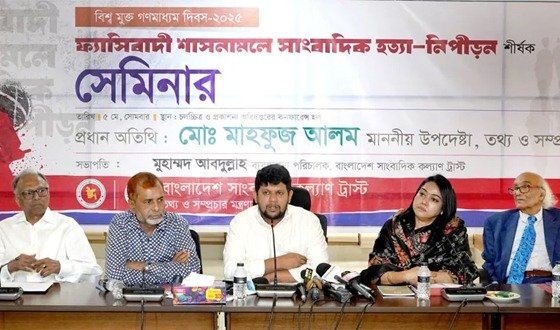 তথ্য ও সম্প্রচার উপদেষ্টা মো. মাহফুজ আলম সোমবার তথ্য ভবনে বিশ্ব মুক্ত গণমাধ্যম দিবস ২০২৫ উপলক্ষে বাংলাদেশ সাংবাদিক কল্যাণ ট্রাস্টের উদ্যোগে ‘ফ্যাসিবাদী শাসনামলে সাংবাদিক হত্যা-নিপীড়ন’ শীর্ষক সেমিনারে যোগ দিয়ে বললেন,