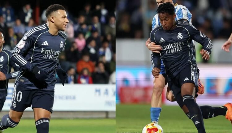 কোপা দেল রেতে তালাভেরার বিপক্ষে ৩-২ গোলের জয়ে জোড়া গোল করেছেন কিলিয়ান এমবাপে। এই পারফরম্যান্সের মধ্য দিয়ে এক মৌসুমে রিয়ালের হয়ে ক্রিশ্চিয়ানো রোনালদোর সর্বোচ্চ গোলের রেকর্ড স্পর্শ করা থেকে এক গোল দূরে আছেন ফরাসি তারকা। গত বুধবার তালাভেরার ঘরের মাঠে এস্তাদিও এল প্রাডো স্টেডিয়ামে রিয়ালের হয়ে চলতি মৌসুমে ৫৭ ও ৫৮তম গোলের দেখা পেয়েছেন এমবাপে। দুই অর্ধে দুই গোল করেন তিনি। আরেকটি গোল আসে প্রতিপক্ষের কাছ থেকে উপহার। তাতে শেষ ষোলোতে জায়গা নিশ্চিত হয় রিয়ালের। ২০১৩ সালে রোনালদো ৫৯ গোল করেছিলেন রিয়ালের বিপক্ষে। সেটি এখন পর্যন্ত রিয়ালের জার্সিতে কারো এক মৌসুমে সর্বোচ্চ গোল। আগামী শনিবার লা লিগায় সেভিয়ার বিপক্ষে একটি গোল করলে রোনালদোকে ছুঁয়ে ফেলবেন এমবাপে আর যদি আবারও জোড়া গোল করেন তবে টপকে যাবেন তিনি পর্তুগীজ তারকাকে। জাবি আলোনসো এই ম্যাচে দশটি পরিবর্তন এনে দলকে মাঠে নামান সবশেষ আলাভেসের বিপক্ষে ম্যাচের একাদশে। বেঞ্চে রাখা হয় জুড বেলিংহাম ও ভিনিসিয়ুস জুনিয়রকে। ম্যাচের শুরু থেকেই আধিপত্য দেখাতে থাকে রিয়াল মাদ্রিদ। প্রথম বাঁশি বাজার পর থেকেই দাপট দেখাতে থাকা রিয়াল অবশ্য ৪২ মিনিটের আগে গোলের দেখা পায়নি। ওই সময়ে মার্কোস মোরেনোর হ্যান্ডবলের কারণে পাওয়া পেনাল্টি থেকে এমবাপে প্রতিপক্ষের গোলকিপার জাইমে গনসালেসকে ভুল পথে পাঠান। ৪ মিনিটের ব্যবধানে আবারও এগিয়ে যায় রিয়াল। তবে এবার আর নিজেদের প্রচেষ্টায় নয়। বাইলাইনে ঘুরে এমবাপে পাস দেন ফারান্দোকে, কিন্তু সেটি ডিফেন্ডারের গা থেকে চলে যায় জালে। আত্মঘাতী গোলে আবারও এগিয়ে যায় লস ব্লাঙ্কোসরা। দ্বিতীয়ার্ধের শেষদিকে ম্যাচের ৮০ মিনিটে একটি গোল শোধ করে তালাভেরা। নাহুয়েল আরাইয়ো গোলটি করেন। গোল করে সম্ভাবনা জাগালেও সেই রেশ বেশিক্ষণ টেকেনি। ৮ মিনিট পর দূরপাল্লার শট নেন এমবাপে। গোলকিপার গনসালেস ঠেকাতে গিয়েও ব্যর্থ হলে জোড়া গোল পূর্ণ করেন ফরাসি তারকা। ৩-১ ব্যবধানে এগিয়ে যায় রিয়াল। স্টপেজ টাইমে তালাভেরার হয়ে দ্বিতীয় গোল করেন গনসালো দি রেনজো, তবে শেষ পর্যন্ত তা যথেষ্ট হয়নি। গেল কয়েক সপ্তাহ বাজে সময় কাটানোর পর শেষ পাঁচ ম্যাচে রিয়ালের তৃতীয় জয় আলোনসোর অধীনে দলের ফর্মে কিছুটা উন্নতির ইঙ্গিত দিচ্ছে। কোপা দেল রের পরের রাউন্ডে ওঠার পাশাপাশি, রিয়াল বর্তমানে লা লিগায় দ্বিতীয় স্থানে রয়েছে এবং জানুয়ারিতে লিগ পর্বের শেষ দুই ম্যাচের আগে চ্যাম্পিয়ন্স লিগে আছে সপ্তম স্থানে।