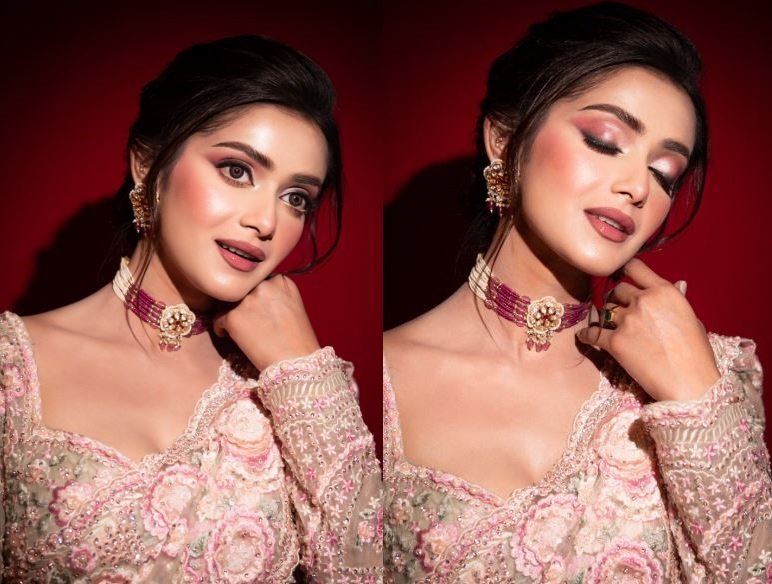 গোলাপি শাড়িতে নজর কাড়লেন তিশা