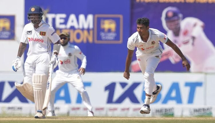 পাথুম নিশাঙ্কাকে ডাবল সেঞ্চুরি করতে দিলেন না হাসান মাহমুদ। মাত্র ১৩ রানের জন্য ম্যাজিক ফিগার থেকে দূরে রইলেন এই ব্যাটার। তারপরও গল টেস্টে তৃতীয় দিন শেষে খুব একটা স্বস্তিতে নেই বাংলাদেশ। বাংলাদেশের প্রথম ইনিংসে ৪৯৫ রানের জবাবে ৪ উইকেটে ৩৬৮ রান তুলেছে শ্রীলঙ্কা। এখন তারা পিছিয়ে মাত্র ১২৭ রানে। হাতে আছে ৬ উইকেট। কামিন্দু মেন্ডিস ৩৭ আর ধনঞ্জয়া ডি সিলভা ১৭ রানে অপরাজিত আছেন। গতকাল বৃহস্পতিবার ম্যাচের তৃতীয় দিনে ৯ উইকেটে ৪৮৯ রান নিয়ে ব্যাটিং শুরু করে বাংলাদেশ। এদিন সফরকারীরা টিকেছে মাত্র ৩.৪ ওভার, যোগ করে মাত্র ৬ রান। ইনিংসের ১৫৪তম ওভারে আসিথা ফার্নান্দোর বলে নাহিদ রানা (৮ বলে ০) উইকেটরক্ষক কুশল মেন্ডিসের হাতে ক্যাচ হলে শেষ হয় বাংলাদেশের প্রথম ইনিংস (৪৯৫ রানে)। অপরপ্রান্তে ১৫ বলে ৭ রানে অপরাজিত থাকেন হাসান মাহমুদ। বাংলাদেশের ৪৯৫ রানের জবাব দিতে নেমে শুরু থেকেই আক্রমণাত্মক খেলতে থাকে শ্রীলঙ্কা। দুই পেসার হাসান মাহমুদ ও নাহিদ রানাকে বিরতি দিয়ে বাউন্ডারি হাঁকিয়ে দ্রুত রান তুলতে থাকেন শ্রীলঙ্কান দুই ওপেনার পাথুম নিশাঙ্কা ও লাহিরু উদারা। প্রথম উইকেটে ৪৭ রানের জুটি করেন দুই লঙ্কান ওপেনার। অবশেষে সেই জুটি ভাঙেন বাংলাদেশের বাঁহাতি স্পিনার তাইজুল ইসলাম। ইনিংসের ১৩তম ওভারে লঙ্কান শিবিরে প্রথম আঘাত হানেন টাইগার স্পিনার। ওভারের প্রথম বলে উদারাকে ফিরতি ক্যাচ বানান তাইজুল। ৩৪ বলে ২৯ রান করে সাজঘরে ফেরত যান লঙ্কান ওপেনার। দলীয় ৪৭ রানে প্রথম উইকেট হারায় শ্রীলঙ্কা। তবে দ্বিতীয় উইকেটে আবারও জুটি গড়ে ফেলে শ্রীলঙ্কা। এই উইকেটে ১৫৭ রানের জুটি করেন পাথুম নিশাঙ্কা ও দিনেশ চান্দিমাল। অবশেষে লঙ্কানদের দেড়শতাধিক রানের জুটিটি ভাঙেন নাঈম হাসান। লঙ্কানদের ইনিংসের ৫২তম ওভারে ডানহাতি স্পিনার নাঈমের বলে লেগ স্লিপে সাদমান ইসলামের হাতে ক্যাচ হন চান্দিমাল। ১১৯ বলে ৫৪ রানের ইনিংস খেলেন তিনি। দলীয় ২০৪ রানে দ্বিতীয় উইকেট হারায় শ্রীলঙ্কা। এরপর সেট হয়ে আউট হয়েছেন শেষ টেস্ট খেলতে নামা অ্যাঞ্জেলো ম্যাথিউজ। তাকে দুর্দান্ত এক ঘূর্ণি ডেলিভারিতে পরাস্ত করেন পার্টটাইম স্পিনার মুমিনুল হক। মুমিনুলের বাঁক খাওয়া ডেলিভারি ডিফেন্ড করতে চেয়েছিলেন ম্যাথিউজ (৩৯), বল ব্যাট ছুঁয়ে চলে যায় উইকেটরক্ষকের গ্লাভসে। ভাঙে ৮৯ রানের জুটি। পাথুম নিশাঙ্কা ডাবল সেঞ্চুরির অনেকটা কাছে চলে এসেছিলেন। ইনিংসের ৮৫তম ওভারে নতুন বল নেয় বাংলাদেশ। ওই ওভারেই দারুণ এক ডেলিভারিতে নিশাঙ্কাকে বোল্ড করেন হাসান মাহমুদ। ২৫৬ বলে ১৮৭ রানের ইনিংসে ২৩টি বাউন্ডারি আর একটি ছক্কা হাঁকান নিশাঙ্কা। দলীয় ৩৩১ রানে চতুর্থ উইকেট খোয়ায় স্বাগতিকরা।