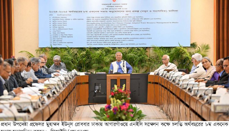 প্রধান উপদেষ্টা প্রফেসর মুহাম্মদ ইউনূস রোববার ঢাকায় আগারগাঁওয়ে এনইসি সম্মেলন কক্ষে চলতি অর্থবছরের ৮ম একনেক সভায় সভাপতিত্ব করেন। -পিআইডি জাতীয় By Jana News24 On মার্চ ২৩, ২০২৫ Share FacebookTwitterReddItWhatsAppPinterestEmailFacebook MessengerLinkedinPrint