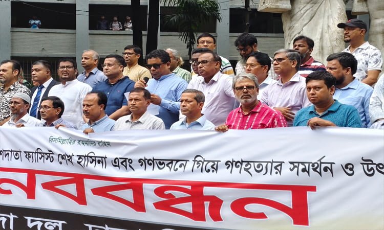 ফ্যাসিস্ট শেখ হাসিনা ও তার সহযোগী ঢাকা বিশ্ববিদ্যালয়ের (ঢাবি) শিক্ষকদের বিচার দাবি করেছে জাতীয়তাবাদী ঢাকা বিশ্ববিদ্যালয়ের (ঢাবি) শিক্ষকদের সংগঠন সাদা দল। রোববার বেলা সাড়ে ১১টার দিকে বিশ্ববিদ্যালয়ের অপরাজেয় বাংলার পাদদেশে জুলাই অভ্যুত্থানে মারণাস্ত্র ব্যবহারের নির্দেশদাতা ফ্যাসিস্ট শেখ হাসিনা এবং গণভবনে গিয়ে স্বৈরাচারের মদদদাতা শিক্ষকদের বিচারের দাবিতে আয়োজিত এক মানববন্ধনে তারা এ দাবি জানান। এসময় তারা গণহত্যায় মদত দেওয়া এবং দুর্নীতির দায়ে অভিযুক্ত ইমেরিটাস অধ্যাপকদের দ্রুত অপসারণ ও ফ্যাসিস্টদের চিরতরে দমন করতে দেশের স্বার্থে সবাইকে একতাবদ্ধ থাকার আহ্বান জানান। মানববন্ধনে ঢাবি সাদা দলের আহ্বায়ক অধ্যাপক ড. মোর্শেদ হাসান খান বলেন, আমাদের আজকের প্রোগ্রামের দুটি এজেন্ডা, খুনি হাসিনার যে রেকর্ড ফাঁস হয়েছে তার বিচার দাবি এবং তার সঙ্গে যারা উৎসাহ দিয়েছে; বিশেষ করে ঢাকা বিশ্ববিদ্যালয়ের কিছু শিক্ষক তৎকালীন সরকারকে ব্ল্যাঙ্ক চেক দিয়েছিল যে আপনারা গুলি চালান। এখন সেই আওয়ামীপন্থি শিক্ষকেরা অন্তর্বর্তীকালীন সরকারের বিপক্ষে বিবৃতি দিয়েছে। এখন আমার প্রশ্ন হলো, যেদিন আমাদের সন্তানদের গায়ে হাত তোলা, অত্যাচার করা এবং হত্যা হুকুম দেওয়া হয়েছিল, সেদিন আপনাদের বিবেক কই ছিল? সেদিন তো আপনারা বিবৃতি দেননি! আমি পরিষ্কারভাবে ঢাকা বিশ্ববিদ্যালয়ের এসব শিক্ষকদের বিচার দাবি করছি। এখানে কোনো লুকোচুরি নেই, তারা সেই সময়ে গণভবনে গিয়েছে এবং ভিডিও ফুটেজ ও ইলেকট্রনিক্স প্রিন্ট মিডিয়াতে তার প্রমাণ রয়েছে। সেগুলোর উপর ভিত্তি করে সরকার ও স্বরাষ্ট্র মন্ত্রণালয়ের প্রতি আহ্বান জানাবো এদের বিচার করার জন্য। আজকে আমদের একটা মূল এজেন্ডা খুনি হাসিনার বিচার এবং তার সহযোগী ঢাকা বিশ্ববিদ্যালয়ের শিক্ষকদের বিচার দাবি করছি। ফ্যাসিস্টরা দেশের বাইরে থেকে ষড়যন্ত্র করে চলছে, আমরা যেন ফ্যাসিস্টদের চিরতরে দমন করতে পারি, সেজন্য সবাই দেশের স্বার্থে এক ও একতাবদ্ধ থাকব। কলা অনুষদের ডিন অধ্যাপক ড. ছিদ্দিকুর রহমান খান বলেন, আপনারা দেখেছেন কীভাবে জুলাইয়ে শিক্ষার্থীদের ওপর মারণাস্ত্র ব্যবহারের নির্দেশ দিয়েছিল খুনি শেখ হাসিনা। বিবিসি তাদের অত্যাধুনিক যন্ত্র দিয়ে নিশ্চিত করেছে-এটি ছিল খুনি হাসিনারই নির্দেশনামা। জাতিসংঘের তথ্য অনুসন্ধানকারী দল তাদের রিপোর্টে জানিয়েছে, জুলাইয়ের অভ্যুত্থানে খুনি হাসিনার নির্দেশে গণহত্যা চালানো হয়েছে। শেখ হাসিনা পার্শ্ববর্তী দেশ ভারত থেকে বিভিন্ন অডিও-ভিডিও বার্তায় সাধারণ নেতাকর্মীদের উসকে দিয়ে দেশকে অস্থিতিশীল করার চেষ্টা চালিয়ে যাচ্ছে। এই অভ্যুত্থানের পর তিনি তার নেতাকর্মীদের বিপদের মুখে ঠ