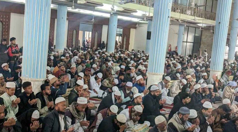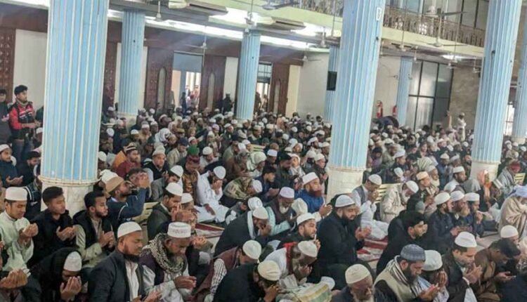 সাবেক প্রধানমন্ত্রী ও বিএনপি চেয়ারপারসন বেগম খালেদা জিয়ার রুহের মাগফিরাত কামনায় দেশের বিভিন্ন মসজিদে বিশেষ দোয়ার আয়োজন করা হয়েছে। দোয়ার সময় মুসল্লিদের অনেককেই আবেগাপ্লুত অবস্থায় চোখের পানি মুছতে দেখা যায়। দোয়ার পাশাপাশি দেশ ও জাতির শান্তি, স্থিতিশীলতা এবং গণতন্ত্র রক্ষার জন্যও প্রার্থনা করা হয়। আজ শুক্রবার বাদ জুমা ঢাকা সহ দেশের বিভিন্ন অঞ্চলের মসজিদে এই দোয়া অনুষ্ঠিত হয়। জুমার নামাজের আদায়ের পর ইমাম ও খতিবের নেতৃত্বে মুসল্লিরা বেগম খালেদা জিয়ার আত্মার শান্তি কামনা করেন। তারা দোয়ায় তার জান্নাতুল ফেরদৌস নসিব এবং পরকালীন মুক্তির জন্য প্রার্থনা করেন। পাশাপাশি শোকাহত পরিবার, আত্মীয়স্বজন এবং অনুসারীদের জন্য ধৈর্য ও শক্তি প্রার্থনা করা হয়। জানা যায়, সাবেক প্রধানমন্ত্রী বেগম খালেদা জিয়ার মৃত্যুতে দেশের বিভিন্ন স্থানে ধর্মীয় আয়োজনের মাধ্যমে তার আত্মার মাগফিরাত কামনা করা হচ্ছে। জুমার নামাজের পর অনুষ্ঠিত এই দোয়া তারই অংশ।