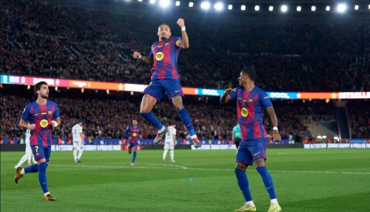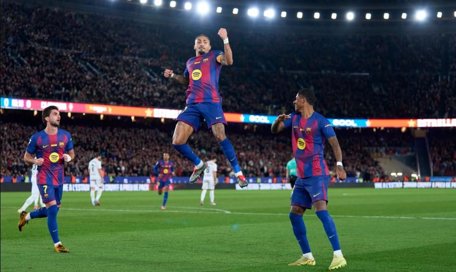 এল ক্লাসিকোয় রিয়াল মাদ্রিদের কাছে হারই যেন তাতিয়ে দিয়েছে চিরপ্রতিদ্বন্দ্বী বার্সেলোনাকে। এরপর থেকে লা লিগায় তারা টানা সপ্তম ম্যাচে জিতল। ওসাসুনার বিপক্ষে তারা এবার রীতিমতো একপেশে দাপট দেখিয়েছে। কাতালানদের হয়ে জোড়া গোল করেছেন ব্রাজিলিয়ান ফরোয়ার্ড রাফায়েল রাফিনিয়া। স্প্যানিশ তারকা লামিনে ইয়ামাল গোল না পেলেও ম্যাচজুড়ে আক্রমণে নেতৃত্ব দিয়েছেন। ঘরের মাঠ ক্যাম্প ন্যুতে গত শনিবার রাতে ওসাসুনাকে ২-০ গোলে হারিয়েছে লা লিগার ডিফেন্ডিং চ্যাম্পিয়নরা। এই জয়ে শীর্ষে থাকা বার্সেলোনা রিয়ালের চেয়ে ব্যবধান আরও বাড়িয়ে নিয়েছে। এক ম্যাচ বেশি খেলে হ্যান্সি ফ্লিকের শিষ্যরা এগিয়ে আছে ৭ পয়েন্টের ব্যবধানে। ওসাসুনার বিপক্ষে ৭০ শতাংশ পজেশনের পাশাপাশি ১৭টি শট নিয়ে ৭টি লক্ষ্যে রাখতে পারে বার্সা। বিপরীতে, সফরকারীদের ৩ শটের মাত্র একটি লক্ষ্যে ছিল। স্বাগতিক কাতালানরা শুরু থেকেই চেপে ধরে ওসাসুনাকে। কিন্তু ধারার বিপরীতে খেলে ২০ মিনিটে সপরকারীরা ভালো একটি সুযোগ পেয়ে যায়। তবে আন্তে বুদেমিরের শট ঠেকিয়ে দেন বার্সা গোলরক্ষক হুয়ান গার্সিয়া। খানিক বাদেই লিড পেয়ে যায় ব্লুগ্রানারা। তবে মার্কাস রাশফোর্ডের ক্রসে হেডে বল জালে জড়ানোর পর ফেররান তোরেসের গোল বাতিল হয় অফসাইডের কারণে। ওই আক্রমণের শুরুতে রাফিনিয়া ও ইয়ামালের বল দেওয়া-নেওয়ার সময়ই ব্রাজিল তারকা অফসাইড অবস্থানে ছিলেন। প্রথমার্ধ গোলশূন্য সমতায় থাকার পর ডেডলাইন ভাঙতে সময় লাগে ৭০ মিনিট পর্যন্ত। স্প্যানিশ মিডফিল্ডার পেদ্রির বাড়ানো বল নিয়ে রাফিনিয়া বক্সের বাইরে থেকে বাঁ পায়ের জোরালো শটে বার্সাকে লিড এনে দেন। ৮৬ মিনিটে ব্যক্তিগত ও দলের দ্বিতীয় গোলটি করেন এই ব্রাজিলিয়ান ফরোয়ার্ড। জুলস কুন্দের ক্রস ক্লিয়ার করতে গিয়ে ফাঁকায় থাকা রাফিনিয়ার পায়ে তুলে দেন ওসাসুনা ডিফেন্ডার। এক স্পর্শে তিনি সেটি জালে জড়ান। এই জয়ে ১৭ ম্যাচে ১৪ জয় ও এক ড্রয়ে শীর্ষে থাকা বার্সার পয়েন্ট দাঁড়াল ৪৩-এ। রিয়াল এক ম্যাচ কম খেলে ৩৬ পয়েন্ট নিয়ে দুইয়ে অবস্থান করছে।