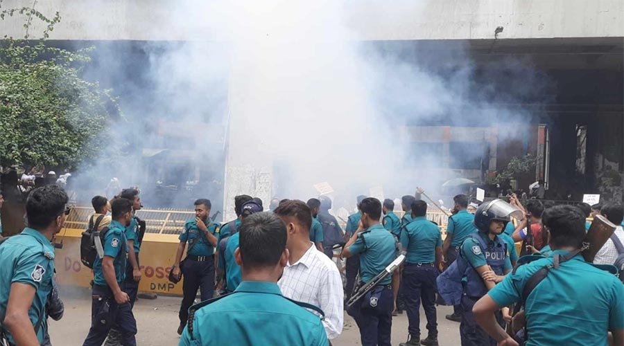 প্রত্যক্ষদর্শীদের মতে, নিয়োগপ্রত্যাশীরা পুলিশের ব্যারিকেড ভেঙে সচিবালয়ের দিকে এগিয়ে যেতে চাইলে আইনশৃঙ্খলা রক্ষাকারী বাহিনী পরিস্থিতি নিয়ন্ত্রণে আনতে একের পর এক পাঁচটির বেশি সাউন্ড গ্রেনেড নিক্ষেপ করে। পাশাপাশি আন্দোলনকারীদের লক্ষ্য করে লাঠিচার্জ করা হয়।