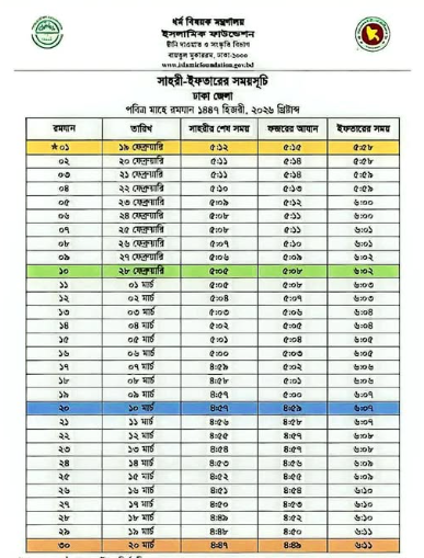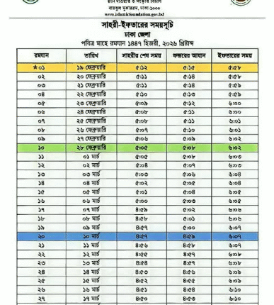 সাহরী ও ইফতারের সূচী ২০২৬ নির্বাচিত By jananews24 Last updated ফেব্রু ২০, ২০২৬ Share FacebookTwitterReddItWhatsAppPinterestEmailFacebook MessengerLinkedinPrint