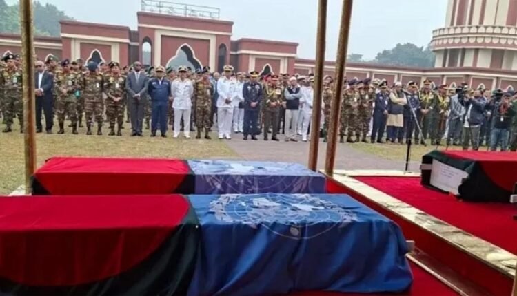 জানাজা শেষে নিহত শান্তিরক্ষীদের কফিনে রাষ্ট্রপতি মো. সাহাবুদ্দিন ও প্রধান উপদেষ্টা অধ্যাপক মুহাম্মদ ইউনূসের পক্ষ থেকে শ্রদ্ধা জানানো হয়। পরে সেনা, নৌ ও বিমানবাহিনীর পক্ষ থেকেও পুষ্পস্তবক অর্পণ করা হয়।