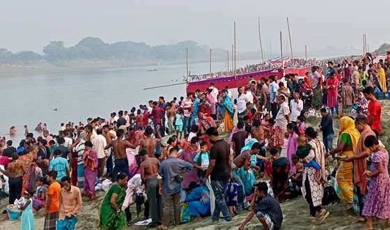 কিশোরগঞ্জের হোসেনপুরের পুরাতন ব্রহ্মপুত্র নদে হিন্দু ধর্মাবলম্বীদের অন্যতম ধর্মীয় উৎসব অষ্টমীস্নানে লাখো পূণ্যার্থীর ঢল নেমেছে। ভগবানের কৃপা ও পাপমুক্তির আশায় শিশু ও বৃদ্ধরাও বাদ যায়নি স্নানোৎসব বরণ করতে। শনিবার (৫ এপ্রিল) ভোর থেকে শুরু হয়ে সকাল ১টা পর্যন্ত হোসেনপুর উপজেলা প্রশাসনের সহযোগিতায় অষ্টমী স্নানোৎসবের আয়োজন করে বাংলাদেশ পূজা উদযাপন পরিষদ হোসেনপুর উপজেলা শাখা ও পৌর শাখা। অষ্টমী স্নান পরিদর্শন করেন-হোসেনপুর উপজেলা নির্বাহী অফিসার কাজী নাহিদ ইভা, থানা অফিসার ইনচার্জ (ওসি) মো. মারুফ হোসেন, হোসেনপুর উপজেলা বিএনপির আহবায়ক মো. জহিরুল ইসলাম মবিন, পৌর বিএনপির আহবায়ক একেএম শফিকুল ইসলাম, সাধারণ সম্পাদক মানছুরুল হক রবিন, জেলা পুজা উদযাপন পরিষদের সাধারণ সম্পাদক মৃদুল কান্তি মজুমদার,